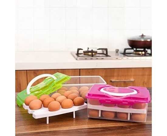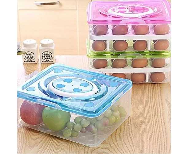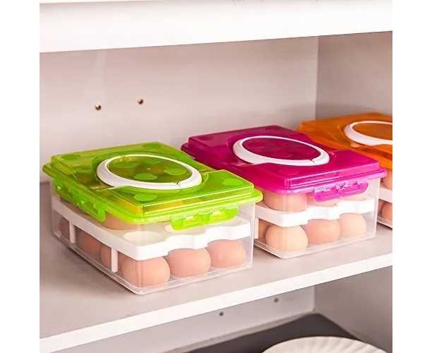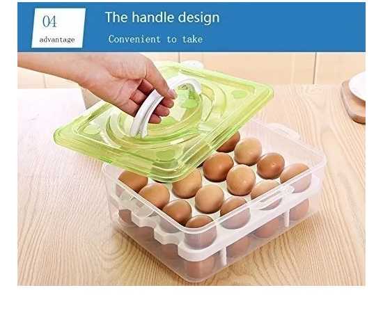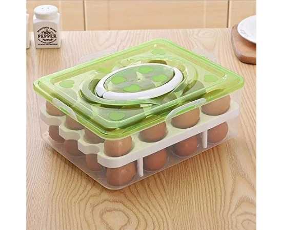 Double Layer 32 Grids Egg Storage Box With Lid - 1 Set