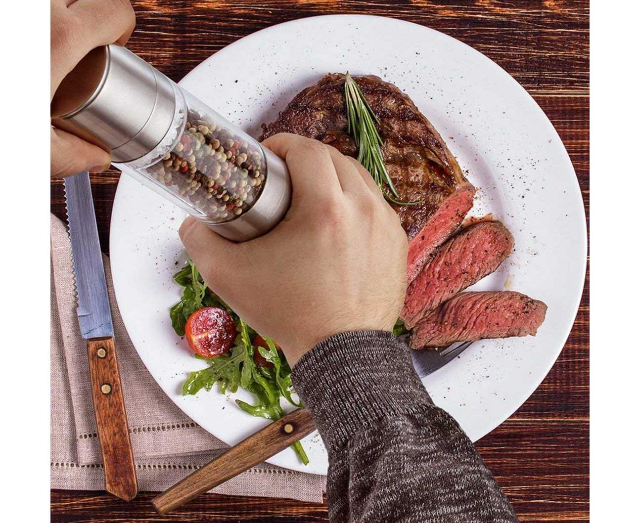 - AT - 2 In 1 Double Stainless Steel Salt & Pepper Mill - 1 Piece