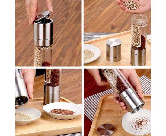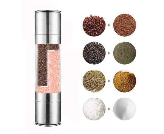 2 In 1 Double Stainless Steel Salt & Pepper Mill - 1 Piece