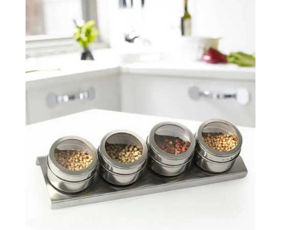 - The set comes with a convenient holder that can be easily mounted on any metal surface, making it easy to access your spices while cooking.Â