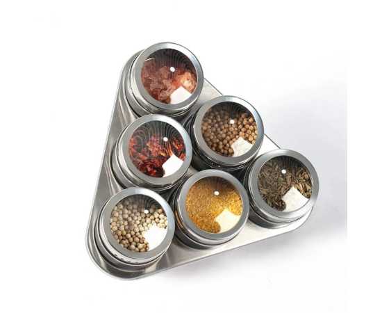- These triangular magnetic spice storage jars are made of high-quality stainless steel, ensuring durability and longevity.Â