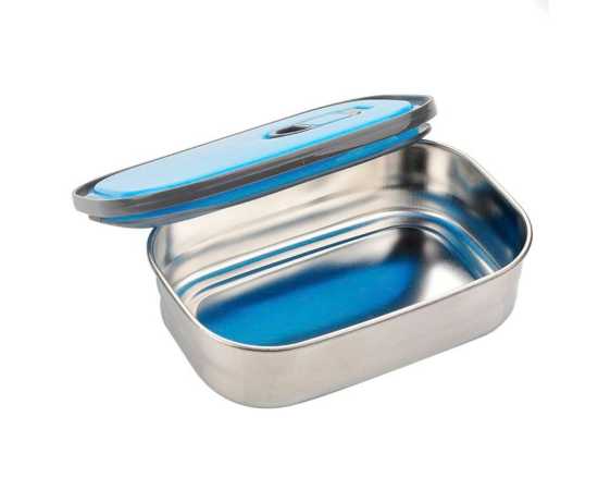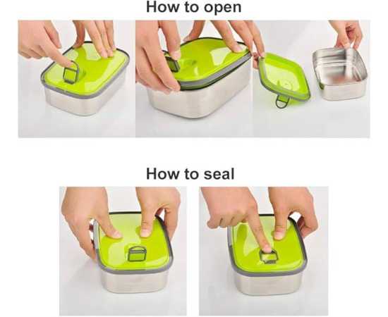 - Rectangular Stainless Steel Food Container with 350ml capacity is ideal for keeping your lunch items and snacks fresh and tasty until ready to eat. No need to dread that moment when you open your bag and you see a sticky mess inside; once you have secured down the snap side fasteners, your food is safe! Join a healthy eating lifestyle! Do Not have to eat dull tasting food on the go anymore. Prepare delicious meals for you and your kids and enjoy! Quick, easy to clean.