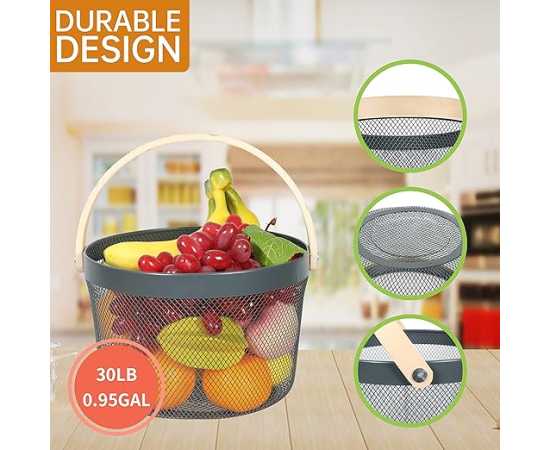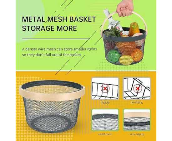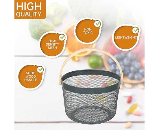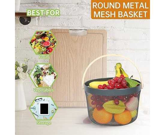 - Round Metal Mesh Steel Basket, Hanging Kitchen Fruit Vegetable HarvestÂ