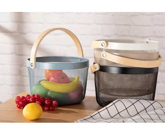 - Basket Multifunction Storage Organizer with Wooden HandleÂ