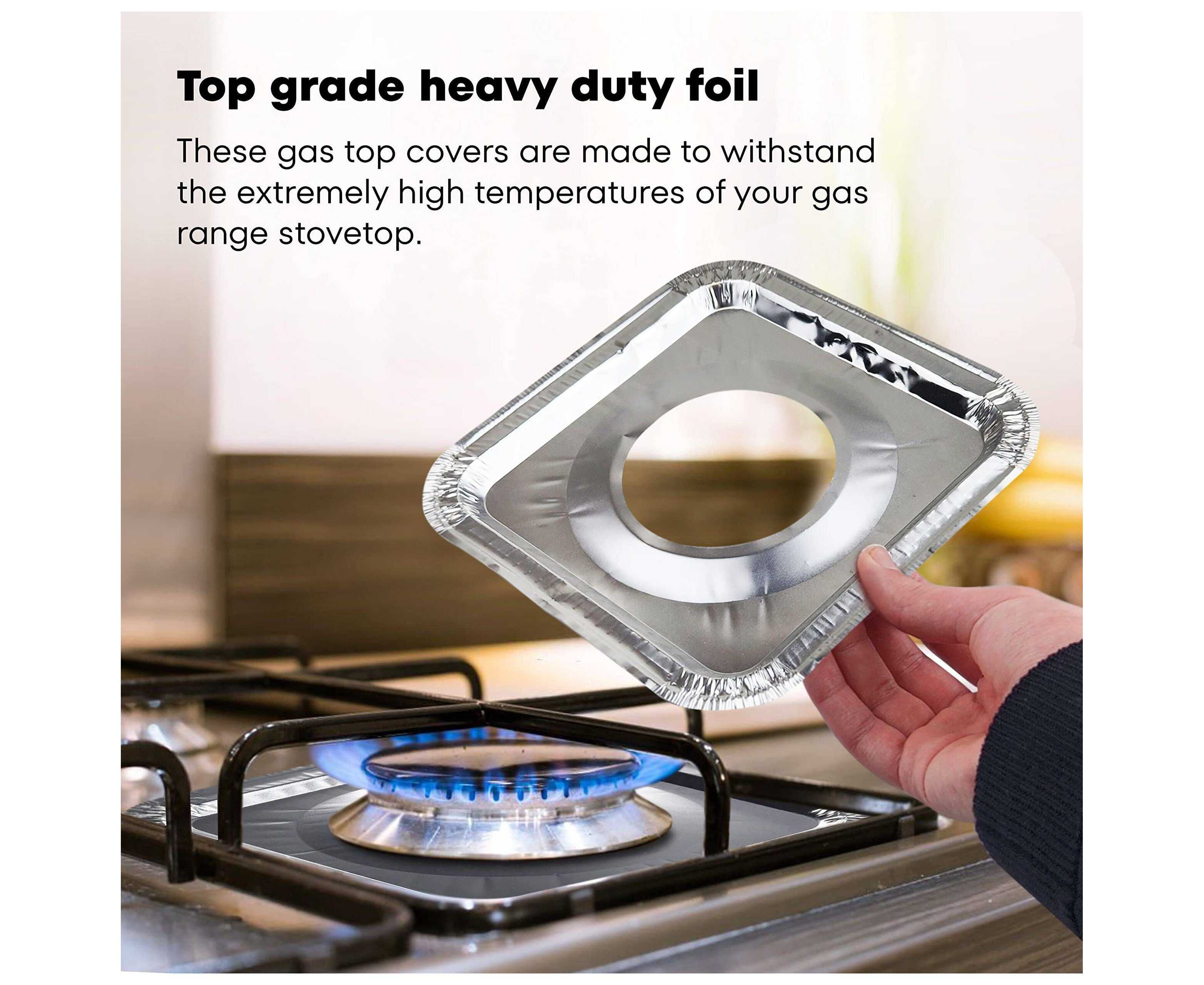- 100% RECYCLABLE, ODORLESS This foil burner drip pans are made with top grade heavy duty foil. These heavy duty durable stovetop protectors are nontoxic, 100% recyclable, odorless and approved. The square burner pan comes in a pack of 100 which will last for many weeks.