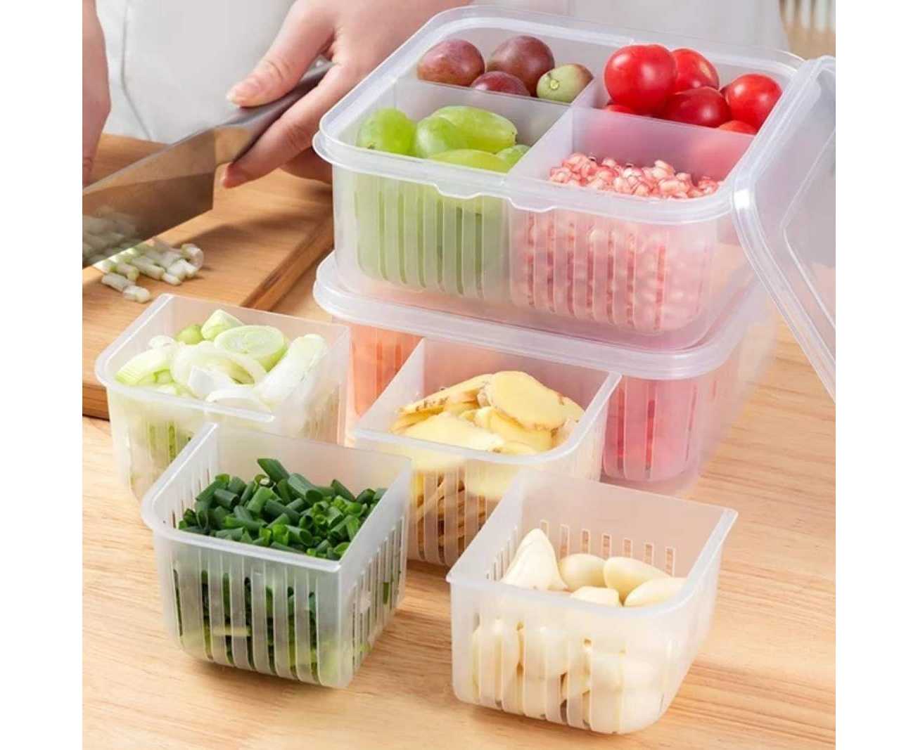 - AT - MultiPurpose Drainer Box 4 Partitions With Lid