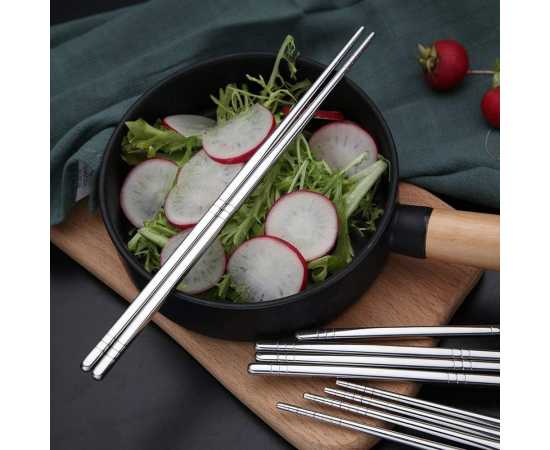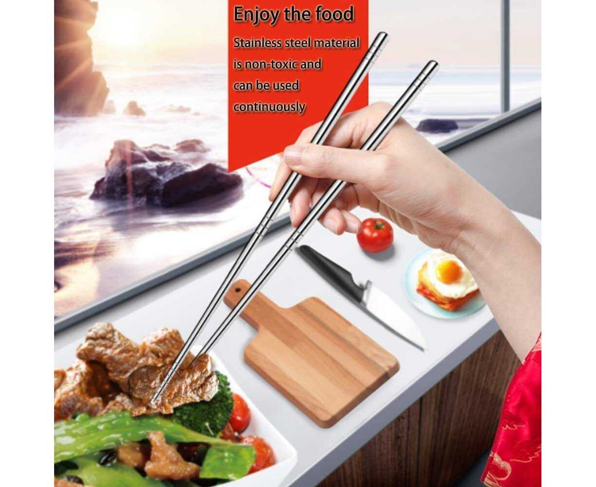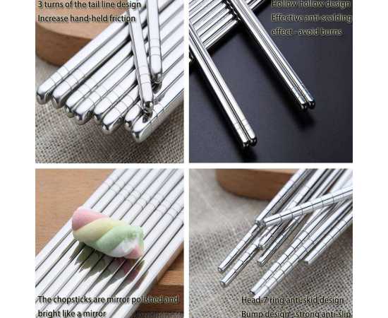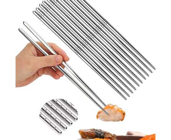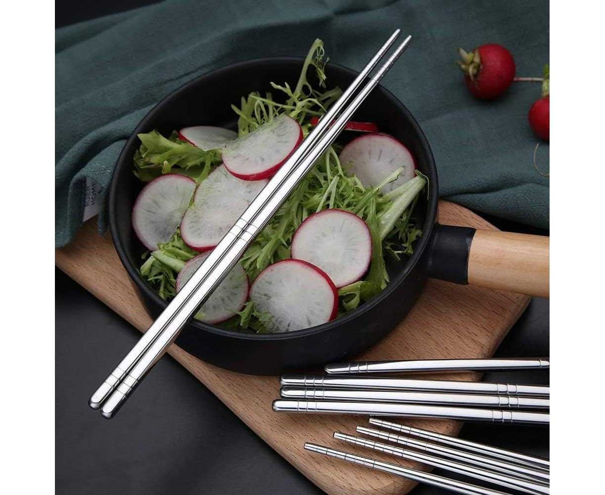 - Pair of 5 SUS 304 Reusable Stainless Steel Chopsticks, Reusable LightweightÂ