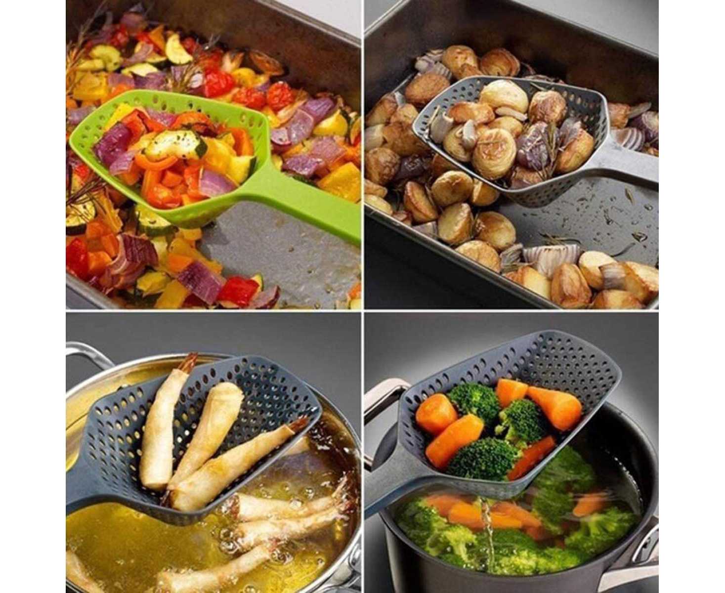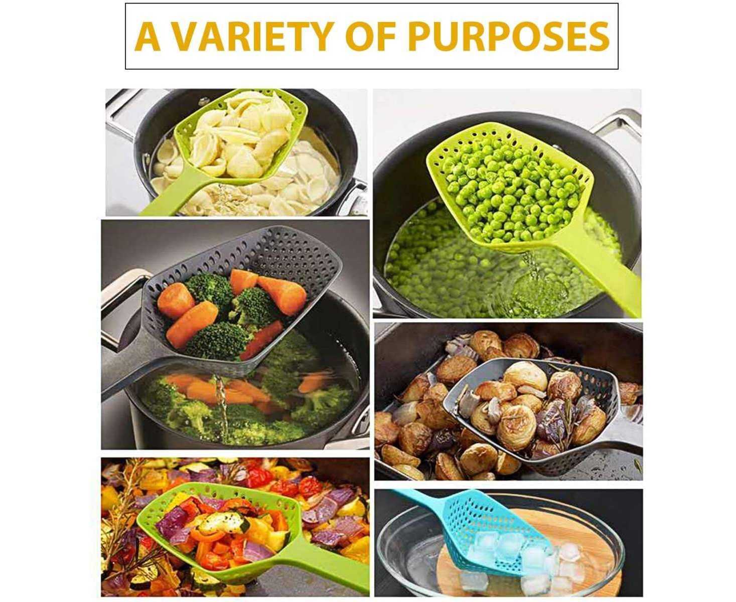 - Good kitchen helper: the cooking spoon works for both hot foods and cold foods, even fried foods, you can use it instead of your kitchen colander to strain pasta, vegetables, roasted or boiled potatoes, and more.
