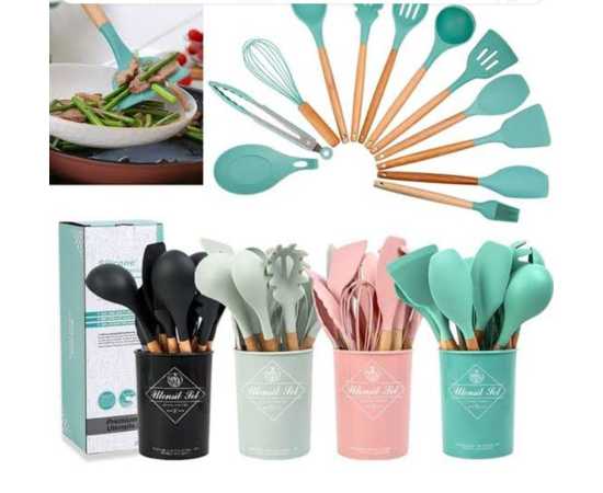 - Premium Alitade 12 piece kitchen utensils set with durable silicone heads & bamboo wood handles.