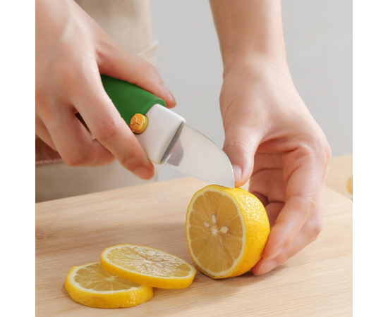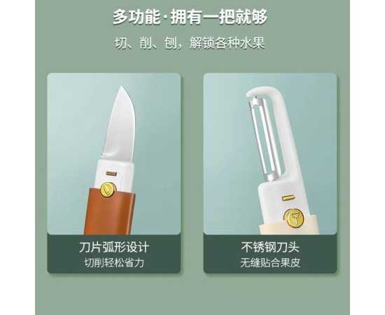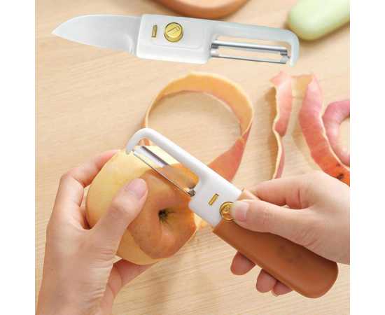 - Fast peeling One end of the fruit peeler is a fruit scraper and the other end is a fruit cutter. The blade is sharp and can be easily peeled off, making it practical