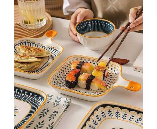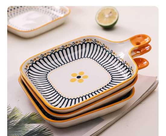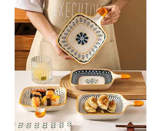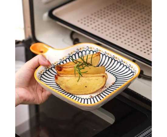 - Ceramic Baking Dish, Bakeware Serving Dinner Plate with Single Handle,Â