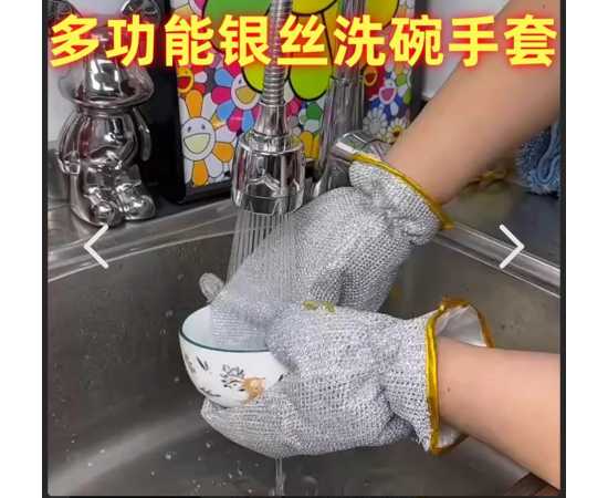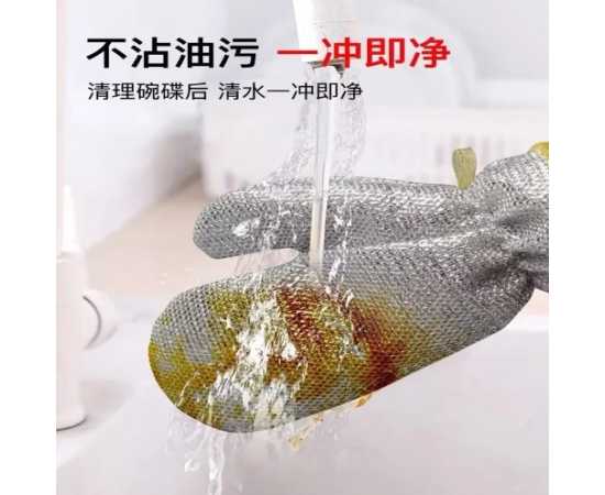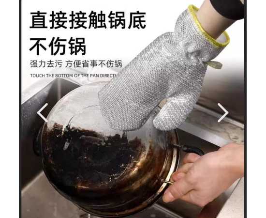 - AT - One Pair Fiber Dish Gloves Non-stick Oil Silver Wire Dishwasher Kitchen Cleaning Oil-proof Waterproof Wire Gloves