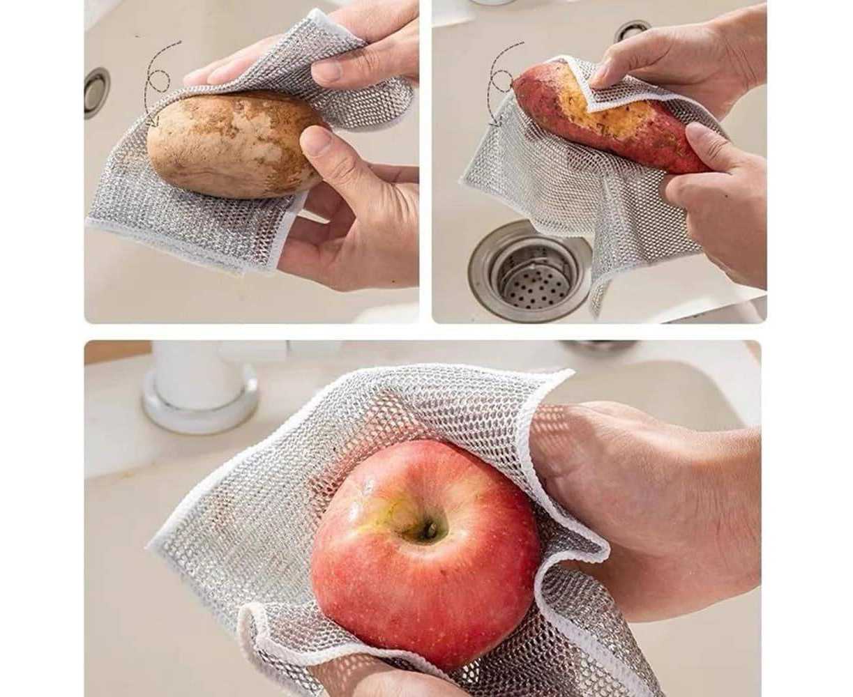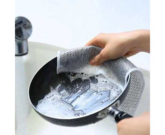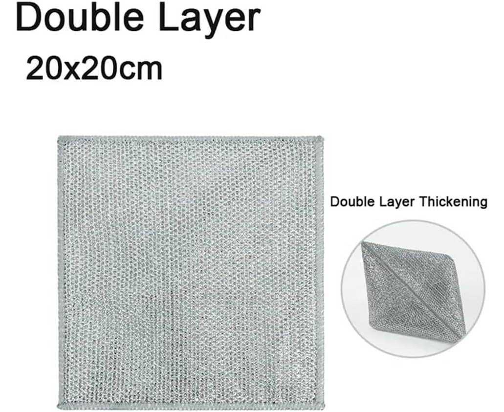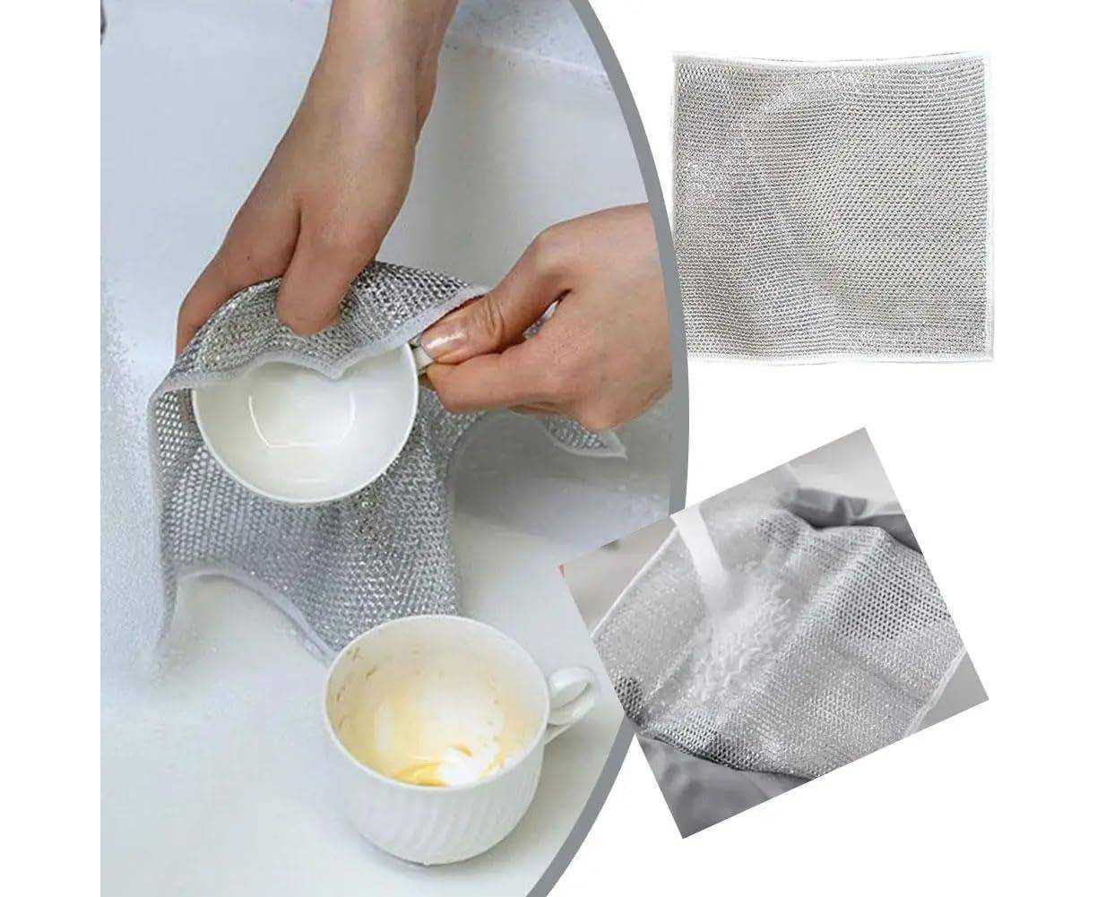 - AT - 4 Pcs Set Dishwashing Double Sided Steel Wired Cloth 8 x 8 Inch