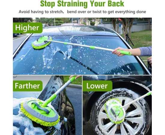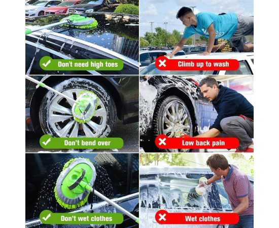 Car Wash Brush Mop Kit With Long Handle 2 In 1 Chenille Microfiber Sponge