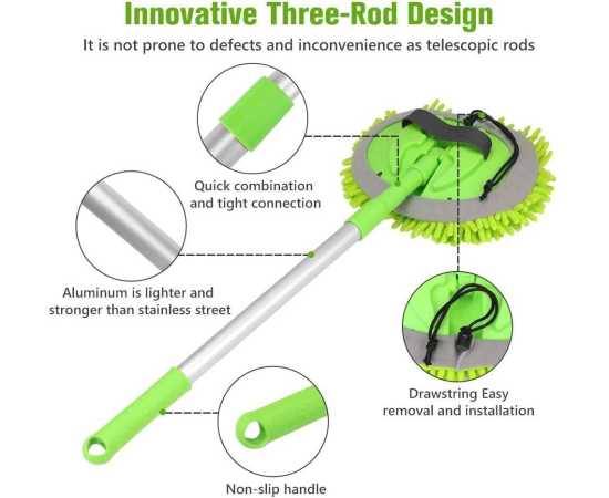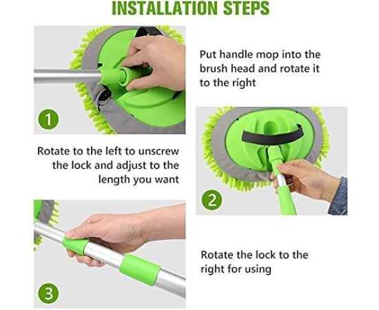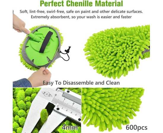 - AT - Car Wash Brush Mop Kit with Long Handle 2 in 1 Chenille Microfiber Sponge Mitt Cleaning Detailing Duster for Washing Car