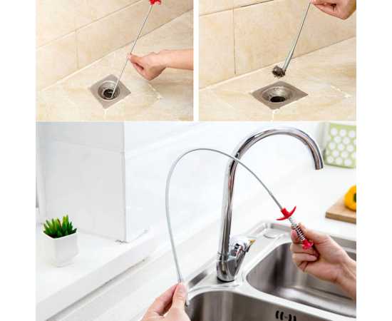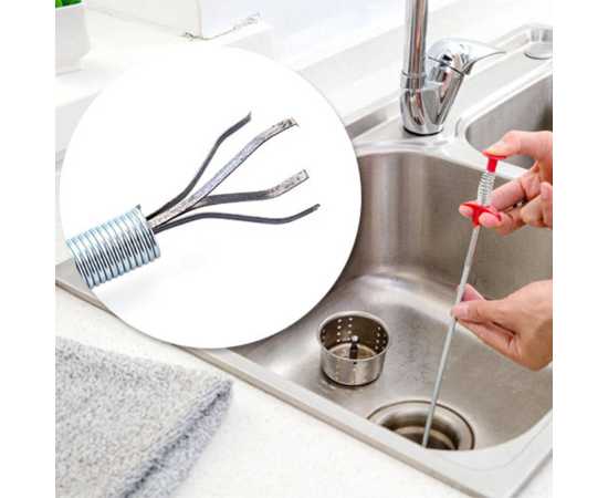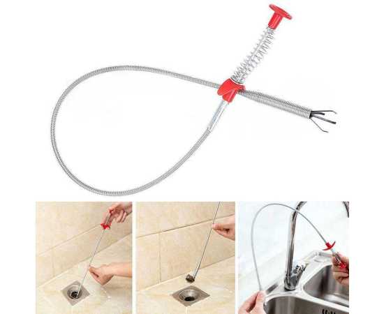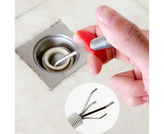 - The Drain snake with easy grip handle and retractable claws