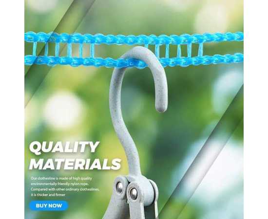 - Our clothesline is made of high quality environmentally friendly nylon rope. Compared with other ordinary clotheslines, it is thicker and firmer, with better toughness and carrying capacity.
