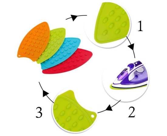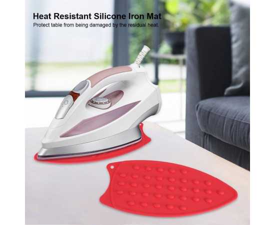 The Flexible Silicone Iron Rest Pad Hot Resistant Mat raised bumps help your iron cool faster, you can rest the iron there and not have to worry about it burning or scorching very nice products. It is a flexible silicone pad, very easy to clean and you can fold it for convenient storage.