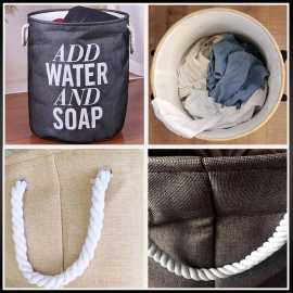 Cotton Linen Foldable Round Storage Basket