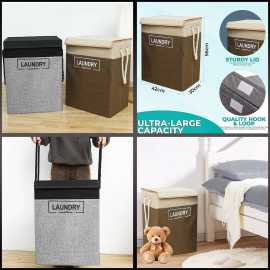 Grey Fabric Laundry Basket Hamper Lid & Handle