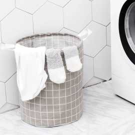 Checked Cylindrical Laundry Basket - 1 Piece