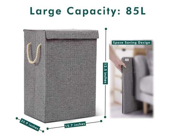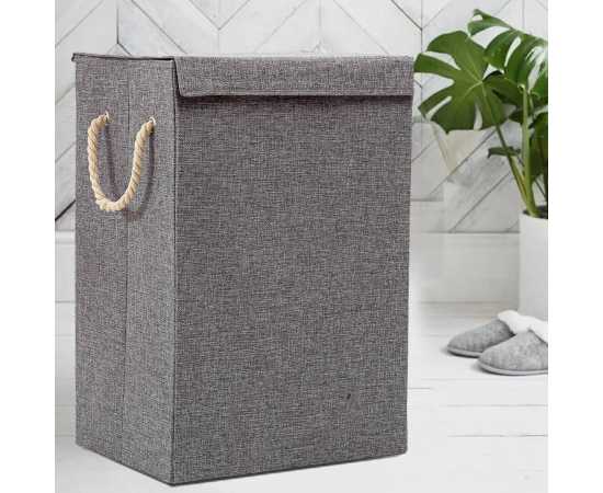 - AT - Grey Fabric Laundry Basket Hamper Lid & Handle