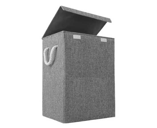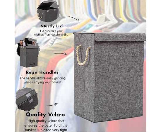 Grey Fabric Laundry Basket Hamper Lid & Handle