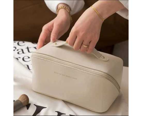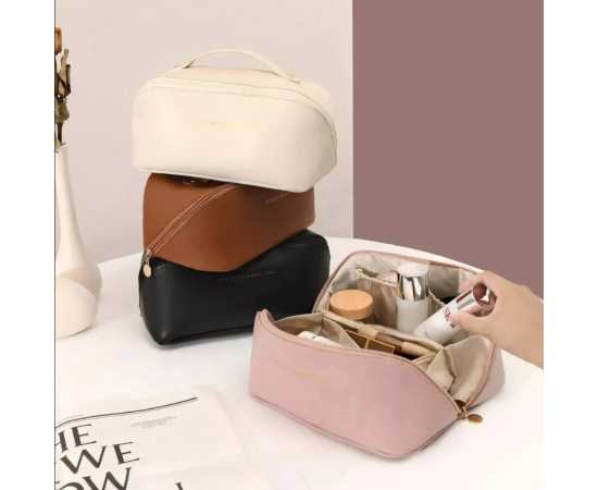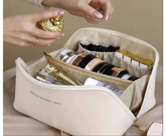 - Organize all your beauty essentials with this spacious Makeup Storage Bag. Featuring dedicated compartments for makeup brushes, toiletries, and cosmetics, this bag ensures everything has its place. The secure zipper closure keeps your items safe, while the compact design makes it perfect for traveling. Whether you're on a weekend getaway or a long vacation, this multipurpose bag is a must-have for any woman on the go.
