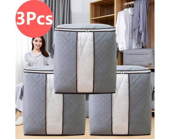 Pack Of 3 - Portable Bamboo Clothes Blanket Large Folding Bag