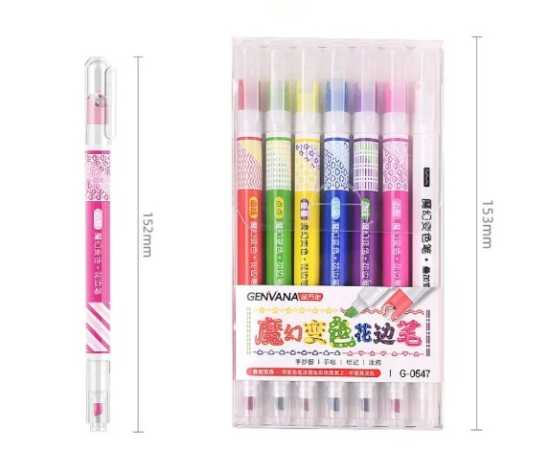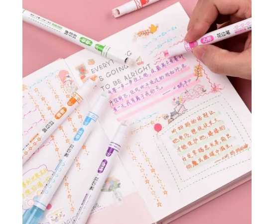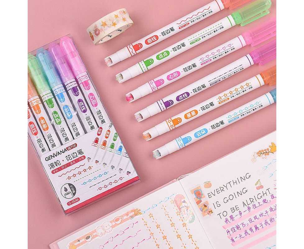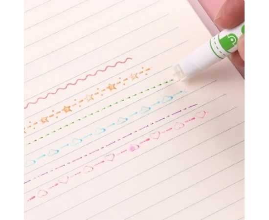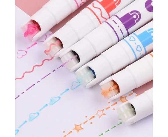 6 Colors Kawaii Roller Flower Heart Curve Line Highlighter Pens