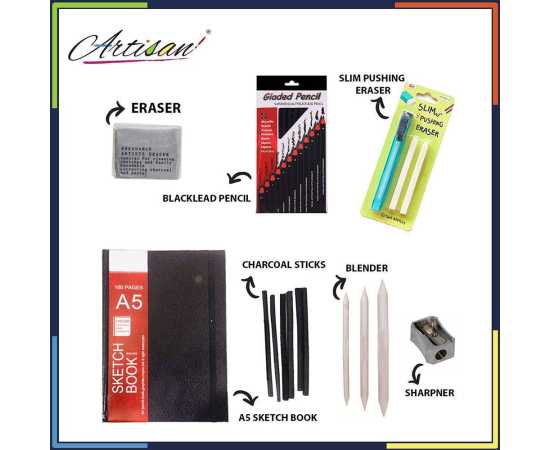 - 25 Pcs Artist Set Included 1 X A5 Alberto Sketch Book -Â