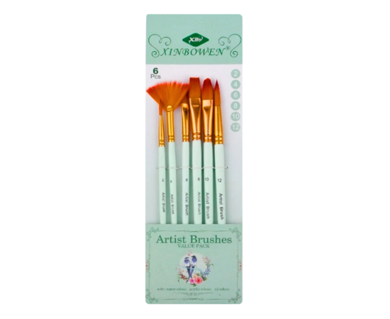 Pack Of 6 Flat Tip Round Tip Angular Tip Fan Brushes