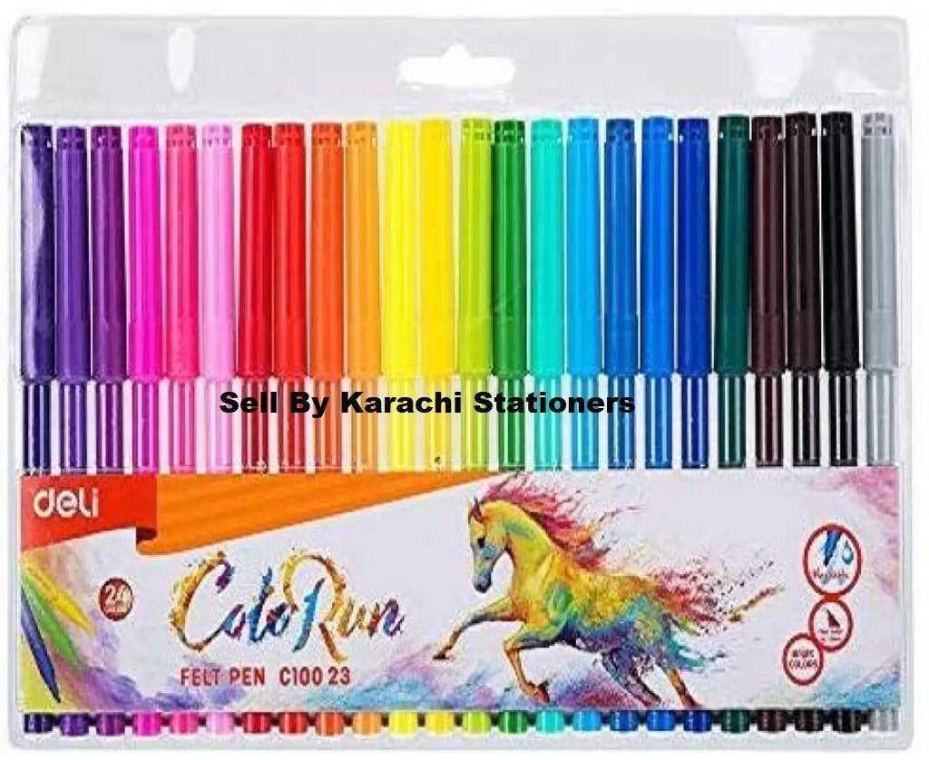 Deli 24 PCS Colors Felt Pen Markers Bright Color