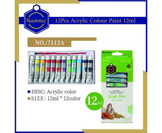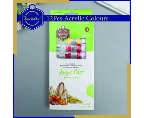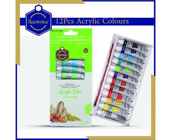 Keep Smiling Acrylic Color Paint Set - Pack Of 12
