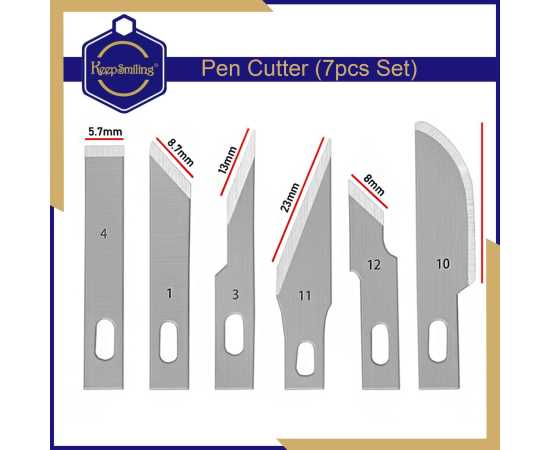 Keep Smiling Set of 7 Pen Cutter Precision Knives