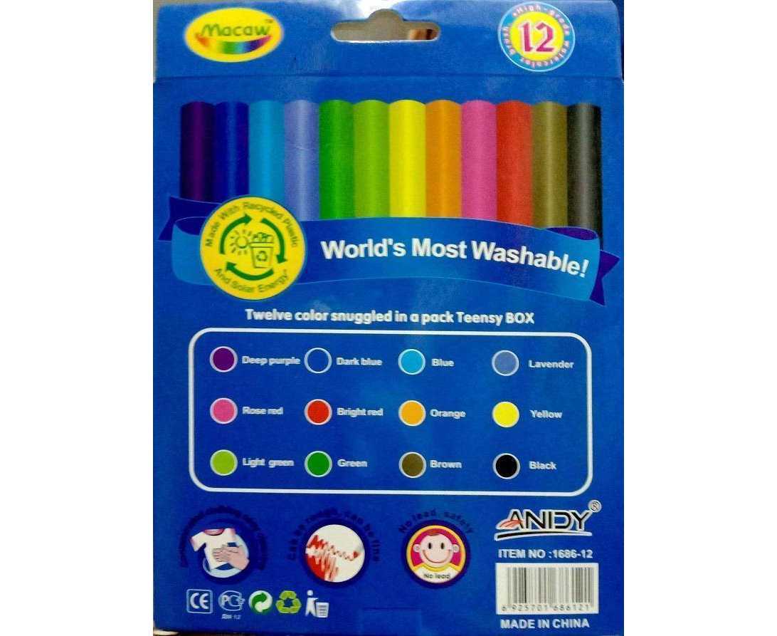 Macaw Set Of 12Pcs Washable Marker Erasable Markers Whiteboard Marker