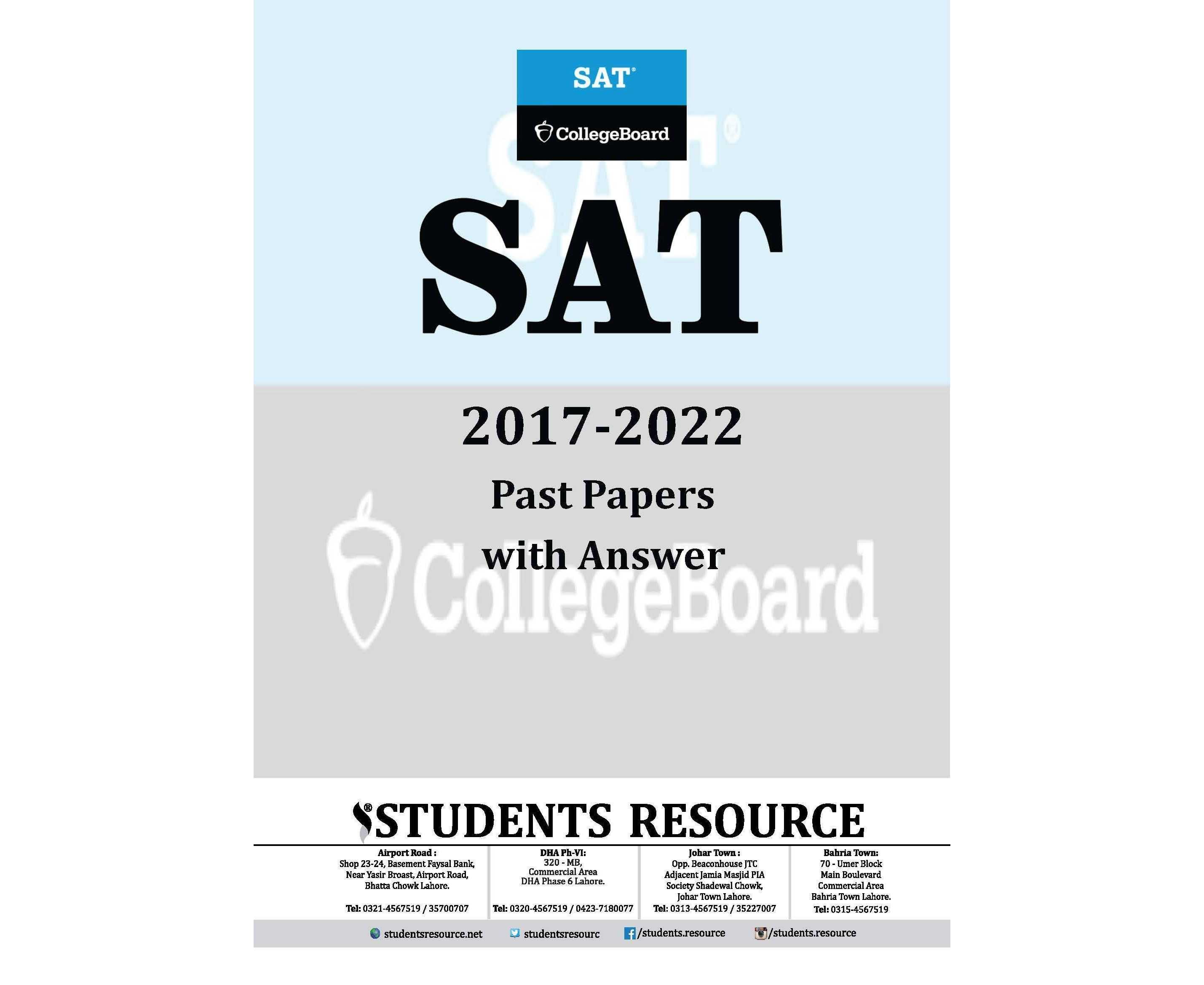 Sat College Board Actual Past Papers With Answers And Detailed Explanations From March 2017 To May 2022