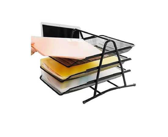- Heavy Duty Metal 3 Tier Desktop Document Letter Tray - Black