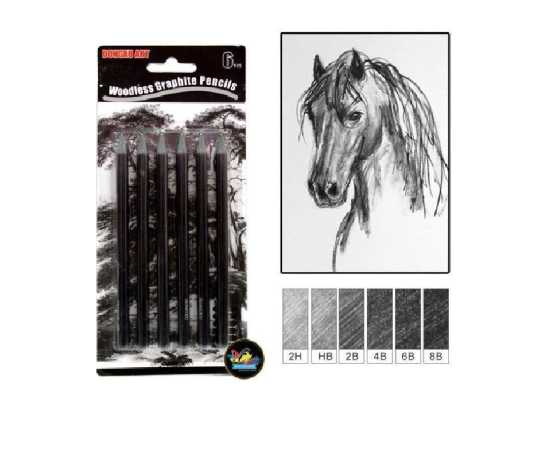 - 6 Grades of Graphite - HB, 2H 2B, 4B, 6B, & 8B
