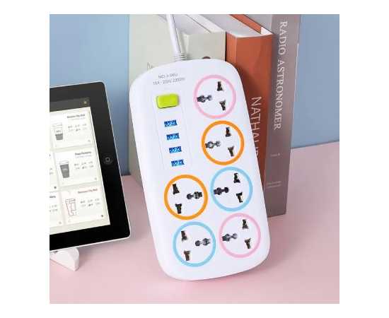 Multipurposed 4 Meter Cable 6 Sockets Universal Sockets