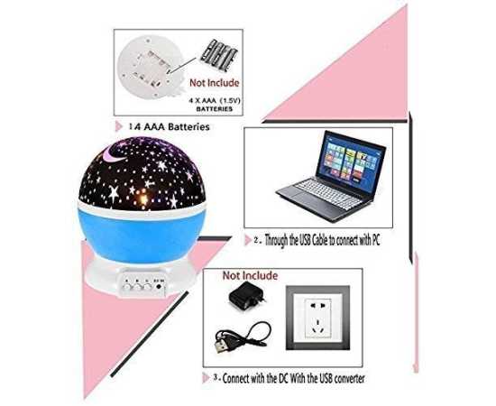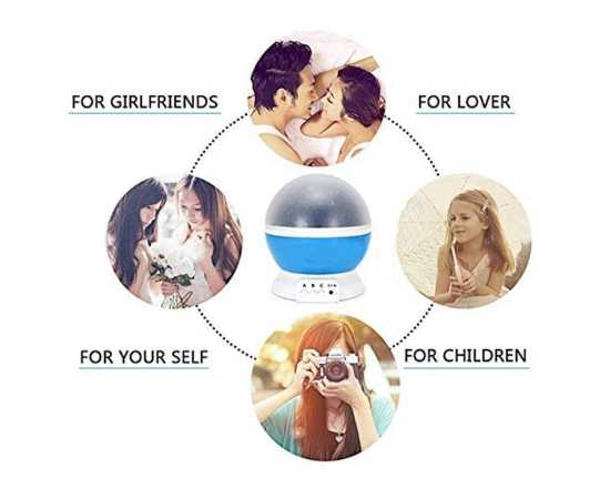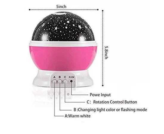 - Romantic cosmos star night light adopts 4 LED starry bulbs with the realization of 360 degree panoramic projection so that you and your children feel like being placed in the beautiful galaxy.So you will see vivid red, green, and white stars swirling and twinkling around the room.
