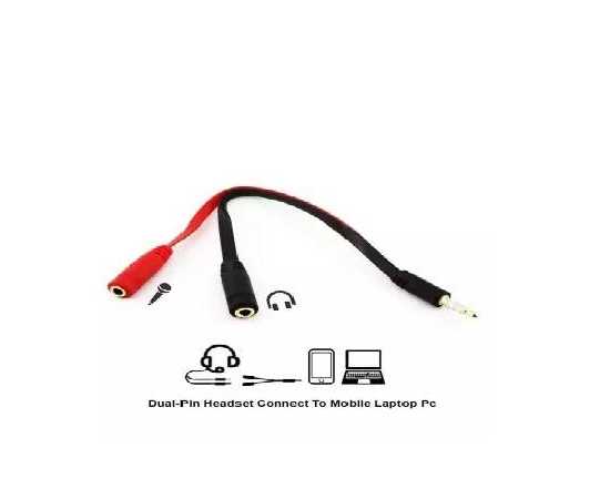 Pack Of 2 Mic And Y Cable Jack Tow Pin Headphone Earphone Audio Splitter Mic