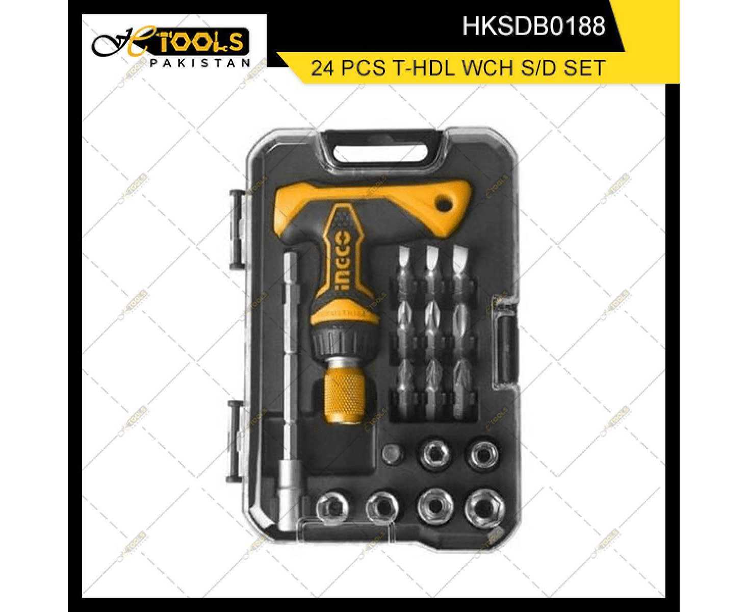 At Ingco 24 Pcs T-Handle Wrench Screwdriver Set Hksdb0188 - (9310)