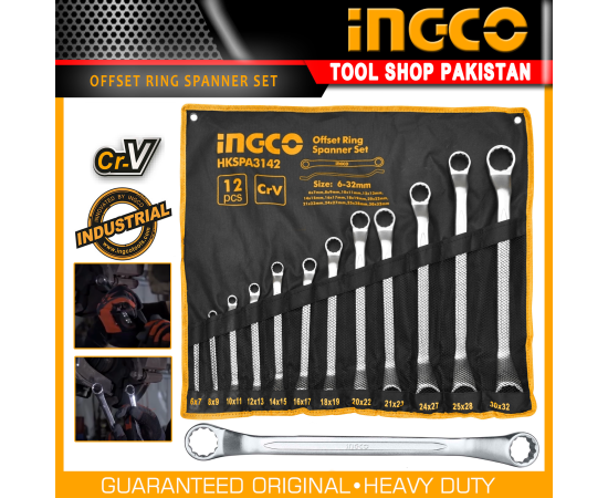 - Ingco 12 pcs Offset Ring Spanner Set 6-32 - CrV - ( A-T )