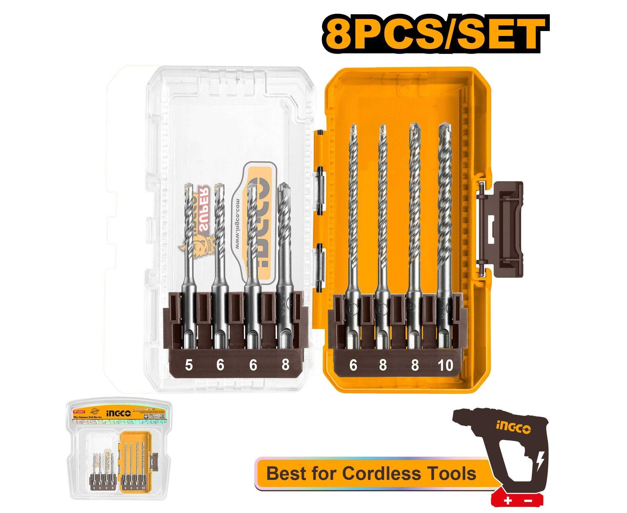 - AT - Ingco AKDL11806 8 Pcs SDS Plus Hammer Drill Bits Set