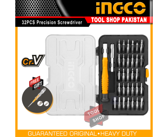 Ingco Original 32Pcs Precision Screwdriver Crv And Magnetic With Free Electric 2 In 1 Electric Tester