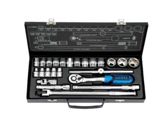 - AT - Licota Made In Taiwan 24 Pcs 1/2" Dr. Flank Socket Set Metal Case 10-32mm