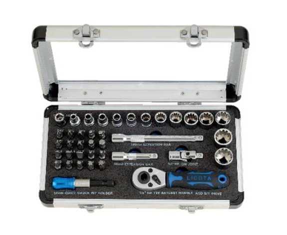 - AT - Licota Made In Taiwan 39 Pcs 1/4" Dr. Spline Socket Wrench & Bit Set Aluminium Case