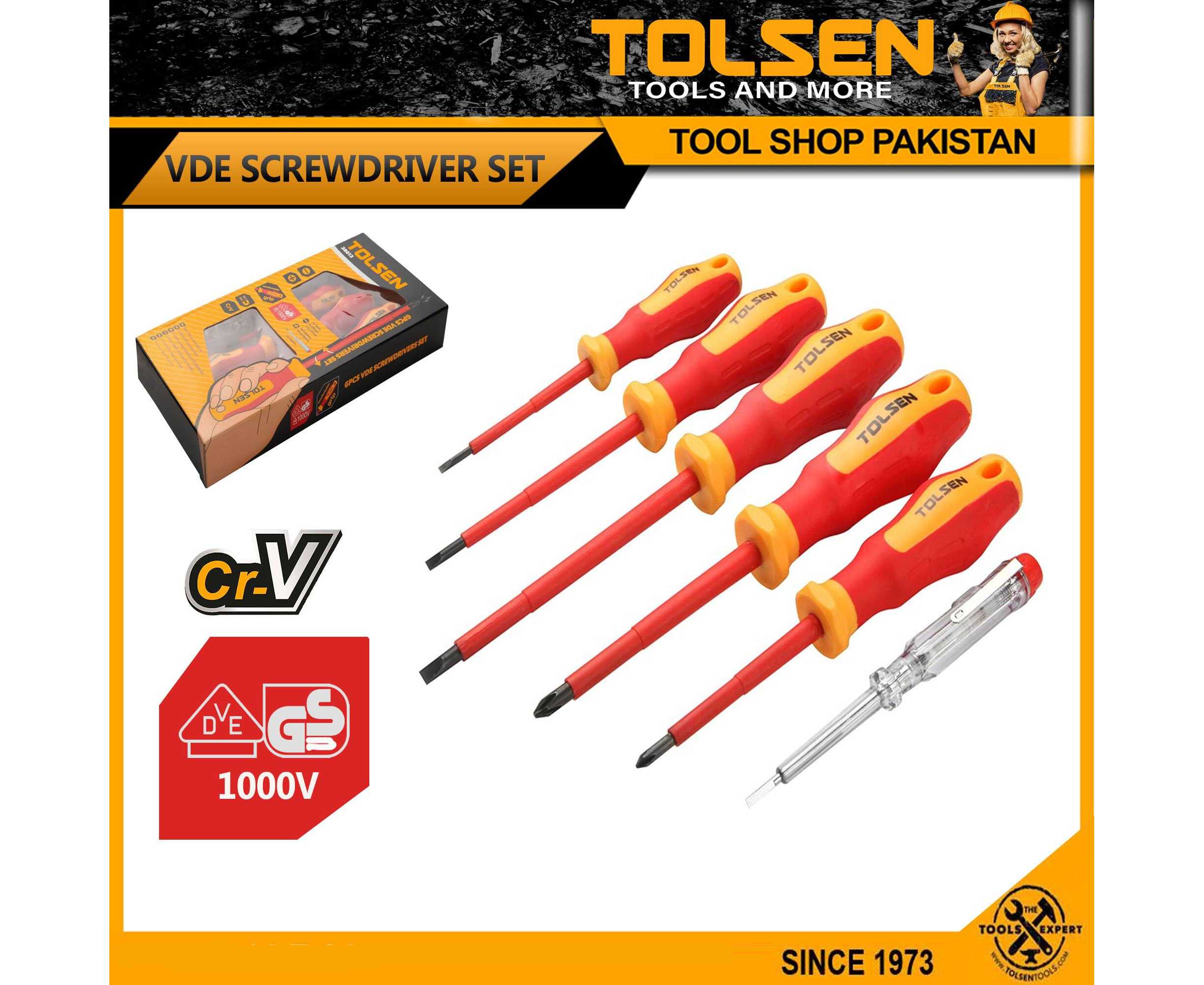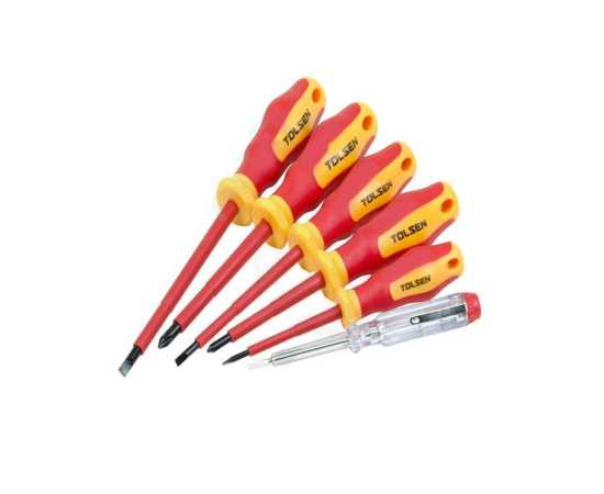 Tolsen 6Pcs Vde Power Insulated 1000V Flat Phillips Handle Screwdrivers Set