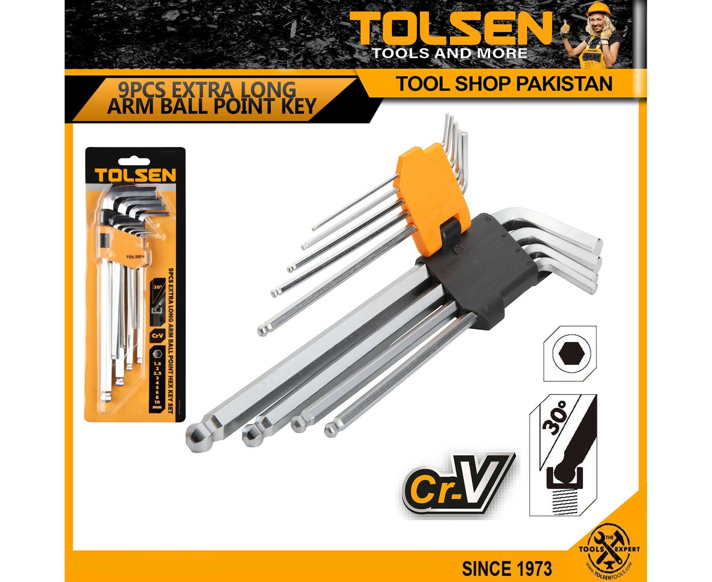 - AT - Tolsen 9pcs Ball Point Extra-long Arm Hex Key Set